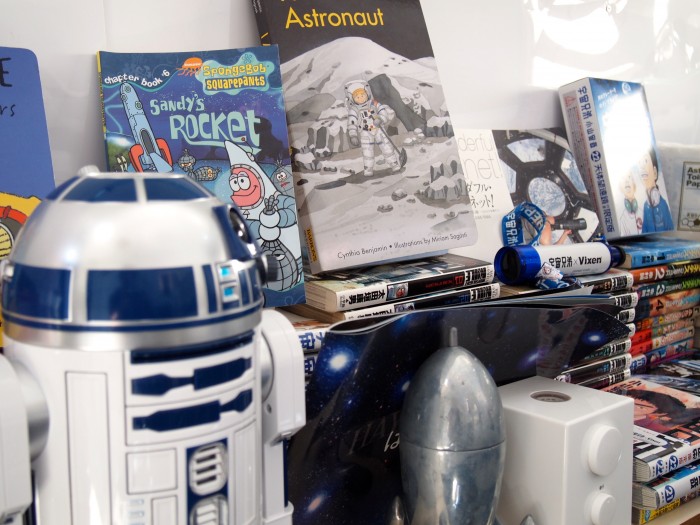 店内は席数にして8席程有り、様々な宇宙関連グッズに囲まれていてスペイシーな気分に浸る事が出来る。