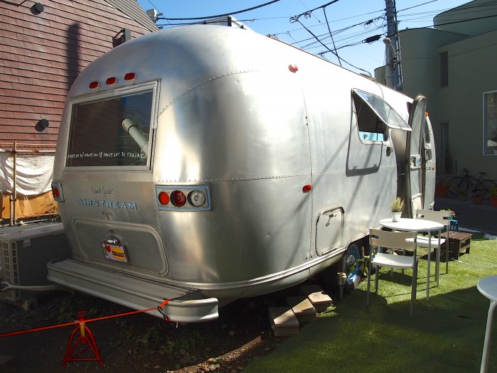 2013.9.4に表参道ヒルズの裏手にOPENした、キャンピングカー「エアストリーム」を改造したトレーラーカフェ。