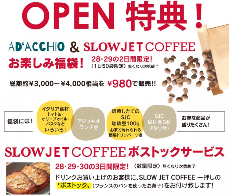 薪窯ピッツア「AD’ACCHIO」と 自家焙煎のハンドドリップコーヒー「SLOW JET COFFEE」が同時OPEN!!