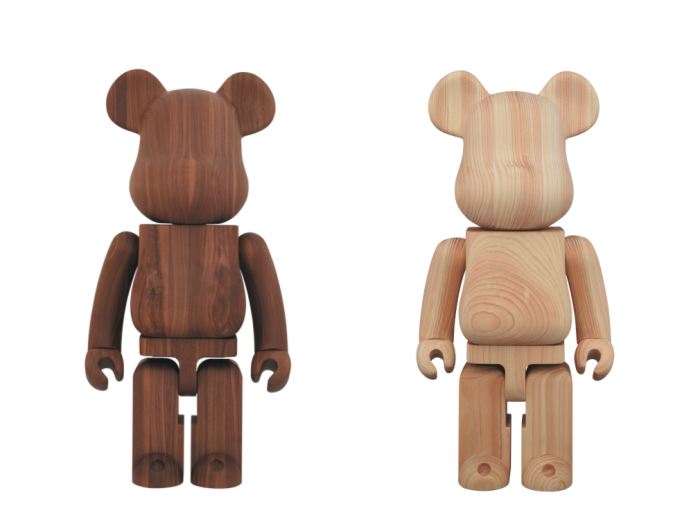 なかでも注目なのは、カフェ等でも人気の家具ブランド「カリモク」社製の、「BE@RBRICK カリモク ウォールナット 1000%(全高約70cm)」で、1点ずつ熟練の職人がハンドメイドで仕上げた究極の逸品で、400%(全高約28cm)では「檜(ひのき)」モデルも登場する。