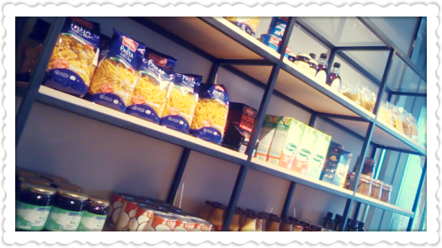 カフェ店内は、フルーツや食品が並びインテリアの一部として溶け込んでいて食欲がそそられます(^^)