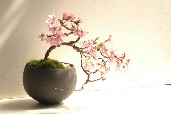 満開桜の盆栽に囲まれた“立ち飲み”の