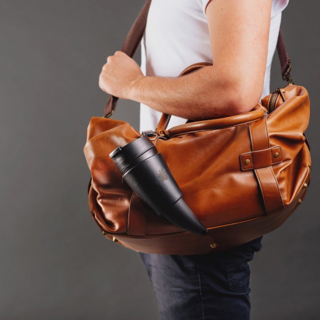 -本革のタンブラーホルダーと取り外し可能な2連ストラップ付き。