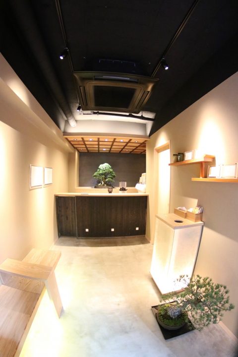 一際目を引く2つの盆栽は、「盆栽のように、年月が経っても本当に良い物は残り続ける」という信念が込められており、