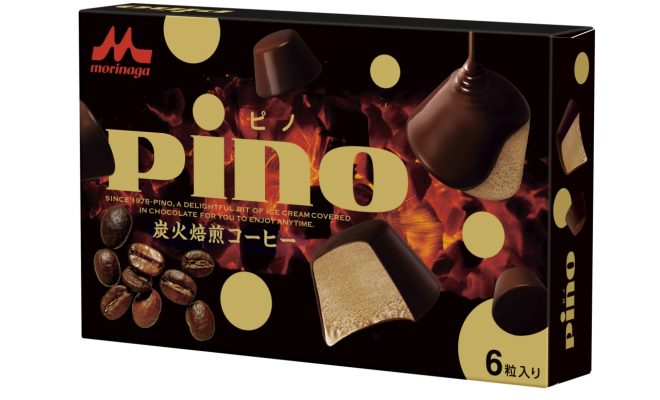 炭火焙煎したコーヒー豆をエスプレッソ抽出した“炭焼きコーヒーエキス”を使用し、ひと粒で広がる香ばしさと、深みのある豊かな味わい楽しみめるとの事で、pino好きもコーヒー好きも要チェックです!!