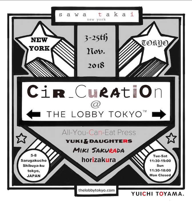 本イベントは「YUICHI TOYAMA.」がニューヨークでの本格展開をスタートさせたことを記念し、ニューヨーク発のファッションブランド「sawa takai」を運営する高井里江のキュレーションのもと、All-You-Can-Eat Press(インディペンデントパブリッシャー)、Miki Sakurada(陶芸家)、Shinji aka horizakura」(彫師)、Sawa Takai(sawa takai デザイナー)ら、計四組のクリエイターを迎えて「THE LOBBY TOKYO」の店内を彩る。