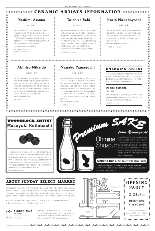 【SUNDAY SELECT MARKET Vol.04 Ceramics Fair】